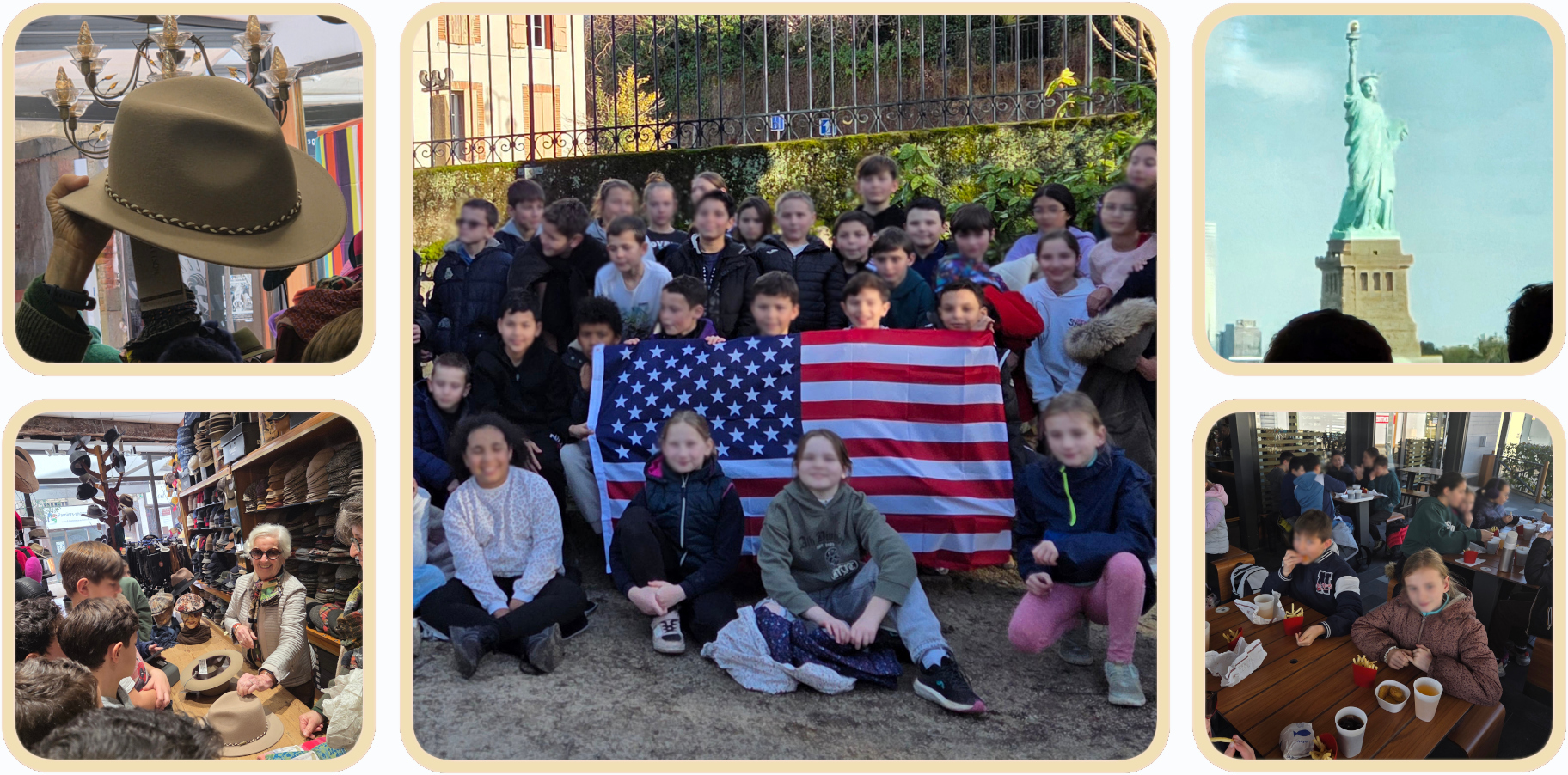 Au programme : Projection à 360° de la ville de New-York (comme si on y était !), repas américain, visite de la chapellerie Sire pour parler Stetson et chapeaux de cow-boy, visite d'un magasin de fournitures américaines, avec aussi enquête et jeu de piste. Une journée inoubliable !