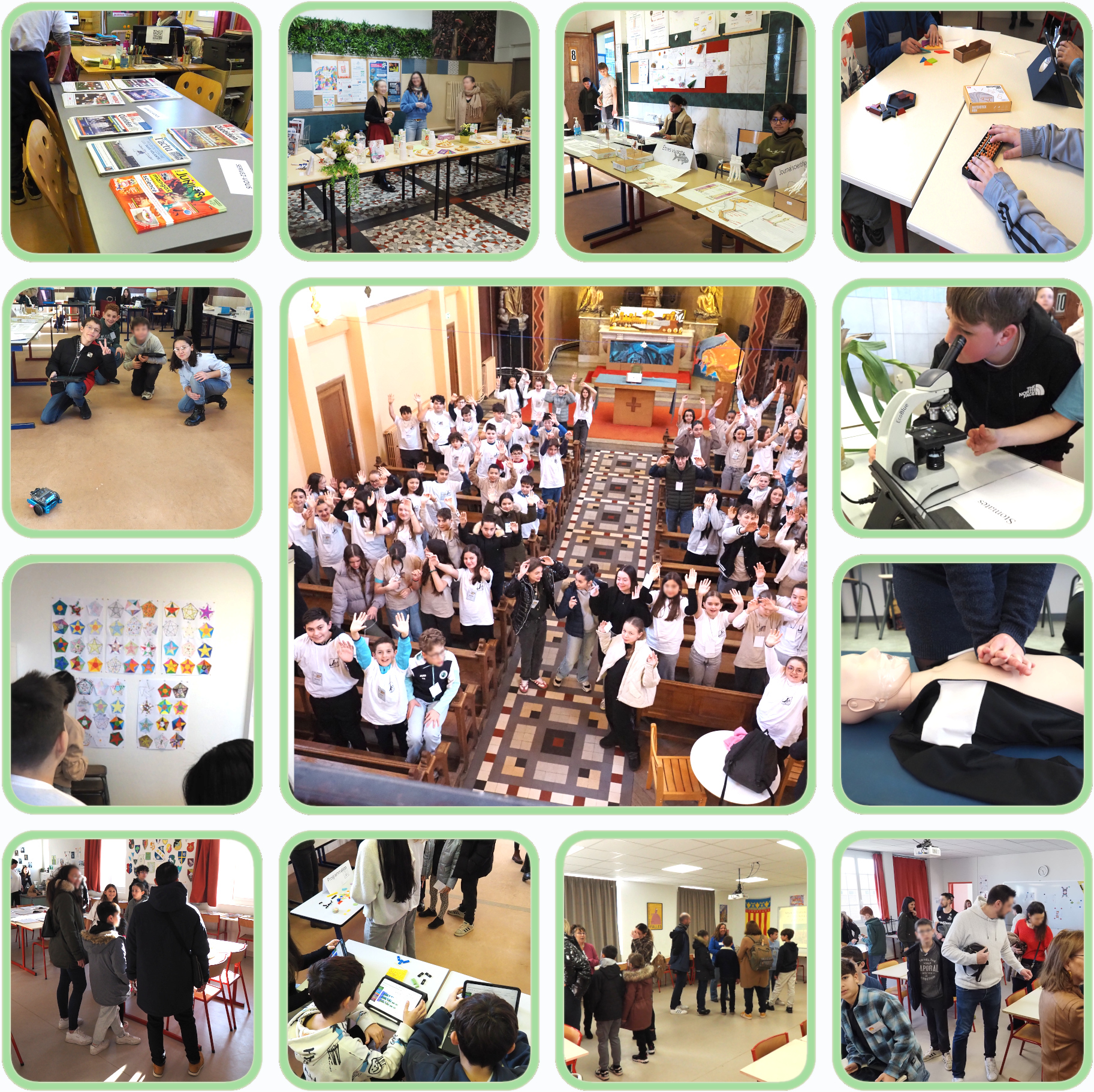 D'abord accueillis par l’APEL, les visiteurs ont pu ensuite découvrir nos locaux et nos activités, de l’école élémentaire jusqu’au collège, et poser toutes leurs questions.