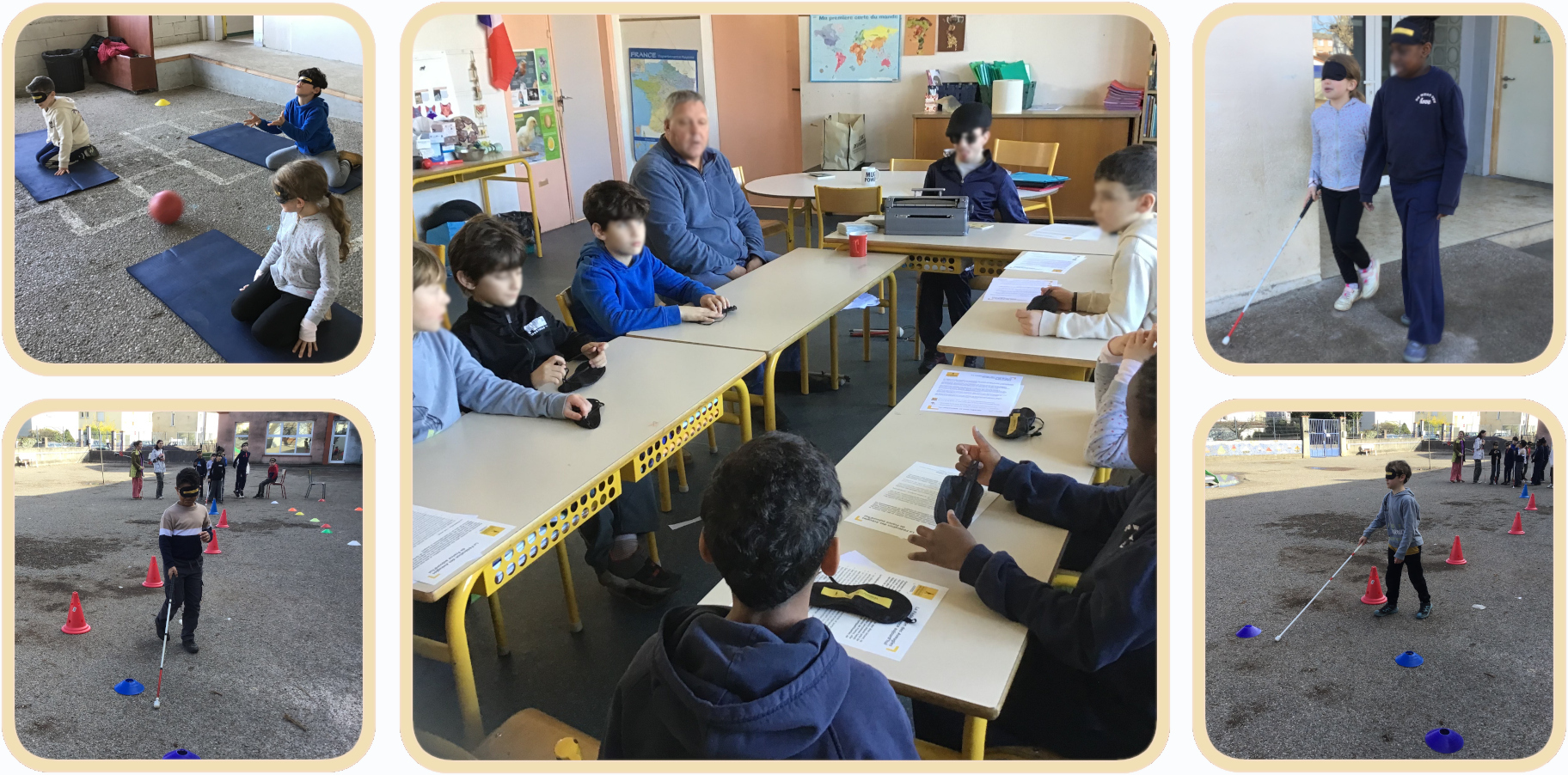 Des ateliers ont permis aux élèves de découvrir le quotidien des personnes non-voyantes ou mal-voyantes : un parcours en canne blanche, une initiation à l’écriture braille et une activité sportive : le torball.
