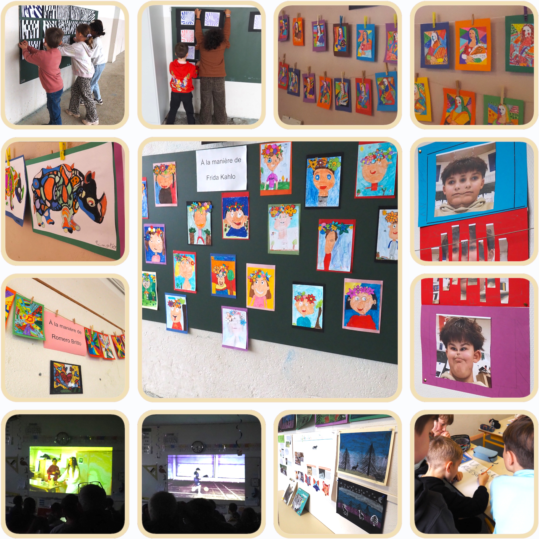 Juste avant les vacances d’hiver, les classes élémentaires ont présenté leurs créations artistiques. Suivez-nous pour une petite visite.