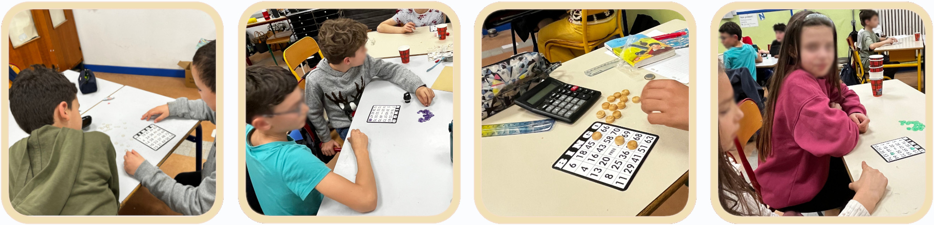 Dans le cadre du projet d'école sur l'apprentissage par le jeu, les élèves de CM1 ont pratiqué un loto.